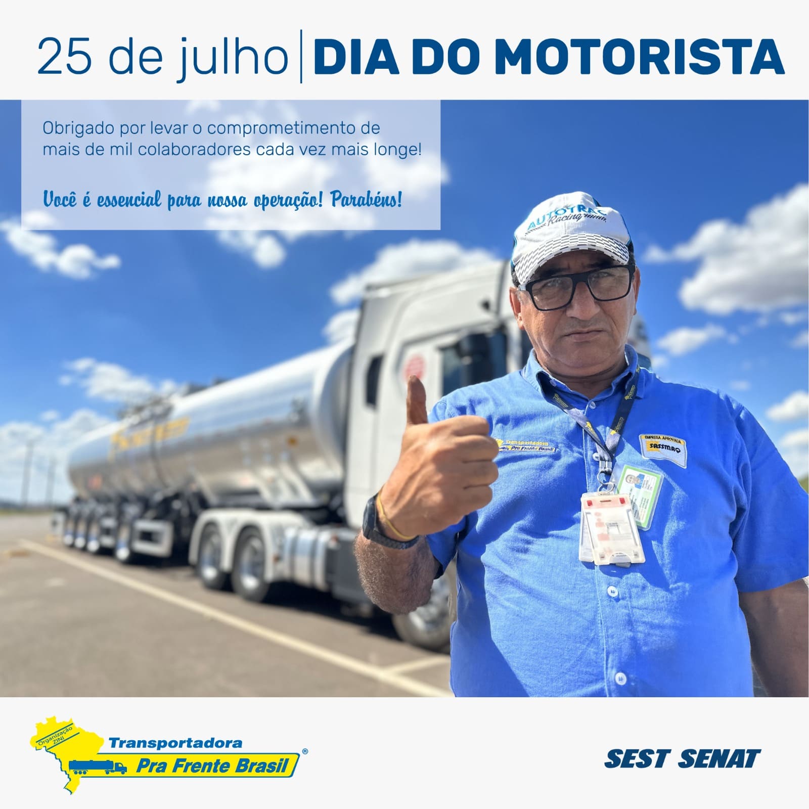 🙌 Seu trabalho vai além do volante. Sua responsabilidade e comprometimento te tornam uma referência de profissional e ser humano, para nós, para o mercado e para seus familiares.